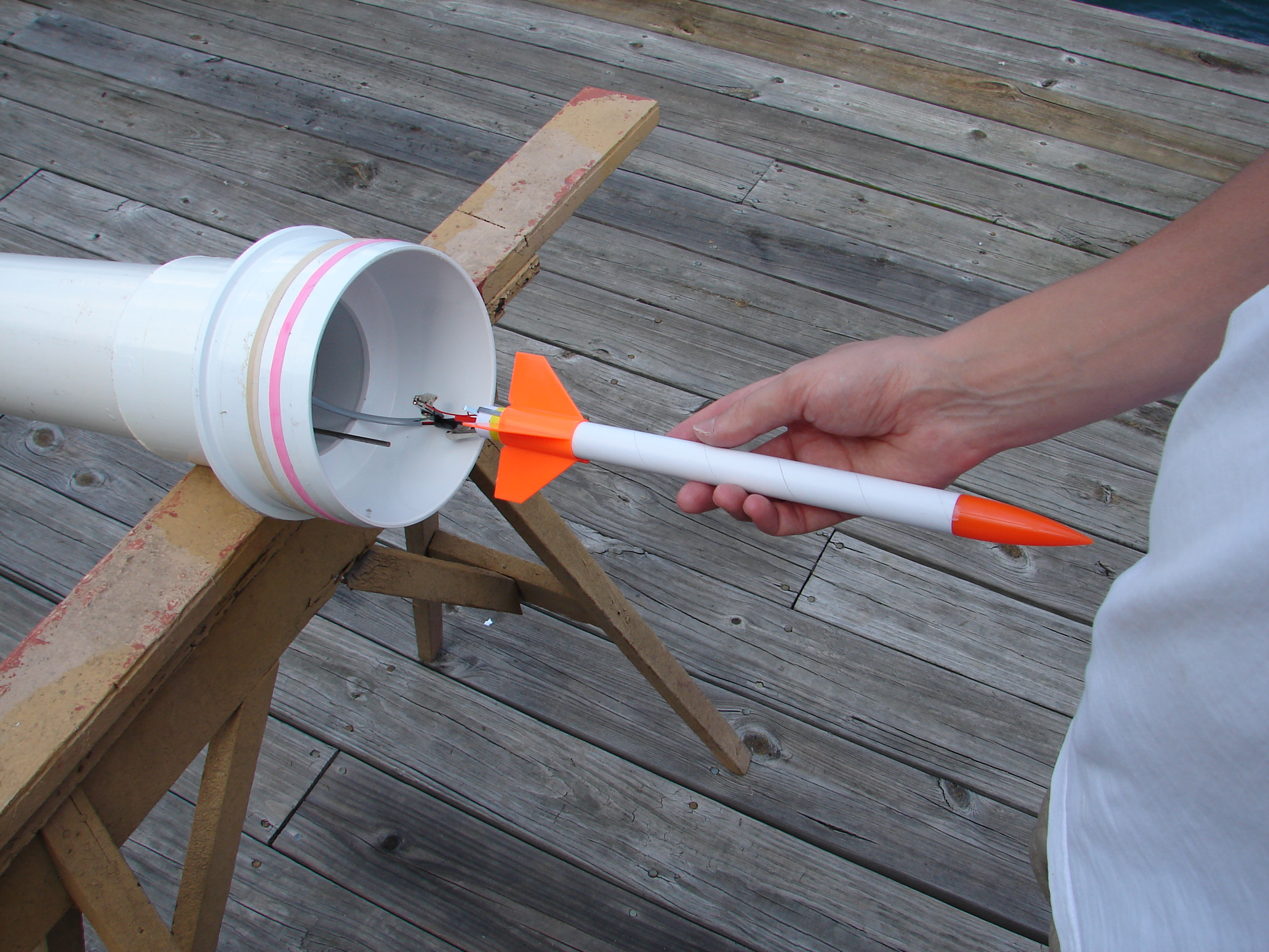 Given the need to ignite the engine, as well as the cardboard construction of the rocket's body tube, we needed a way to keep the rocket dry at least until the engine was firing. A PVC pipe based launch tube was the obvious solution.